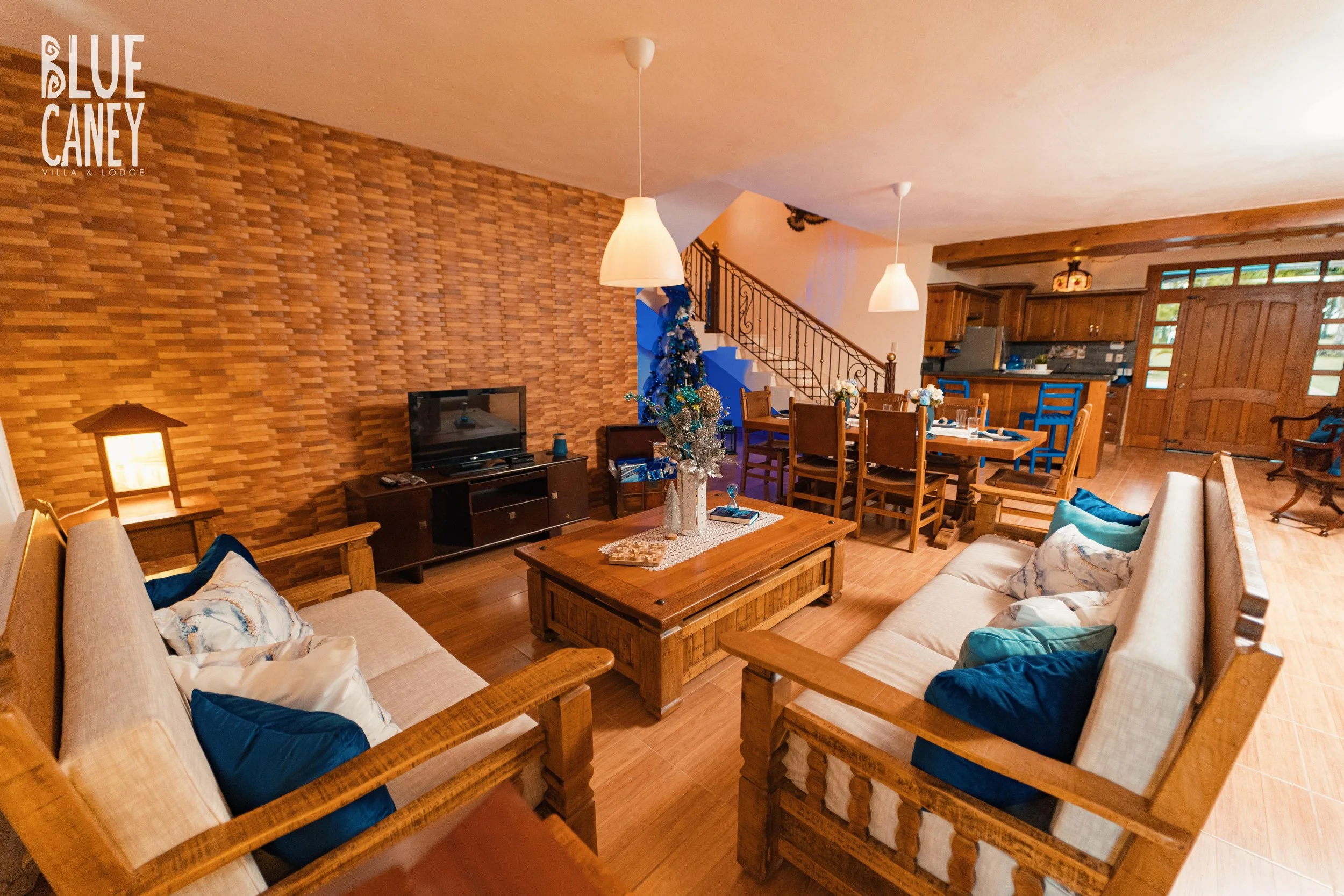 Diseño interior y re-adecuación de villa vacacional campestre para short-term rentals. Proyecto enfocado en resaltar el color azul, siendo el tema principal de todo el proyecto.